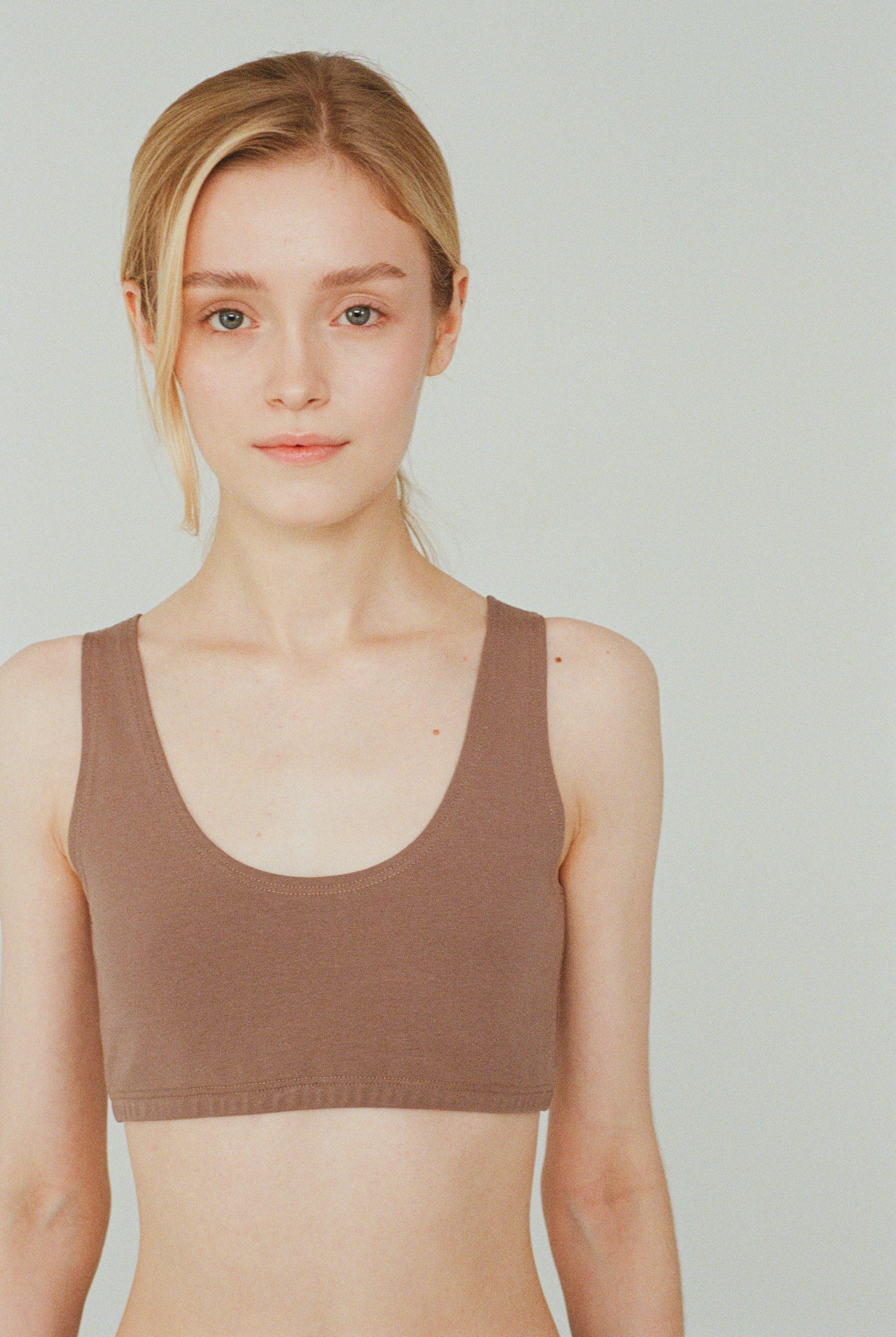 Без косточек, без давления — только форма, подчинённая телу. Выверенный крой позволяет носить топ с логотипом спереди или сзади.