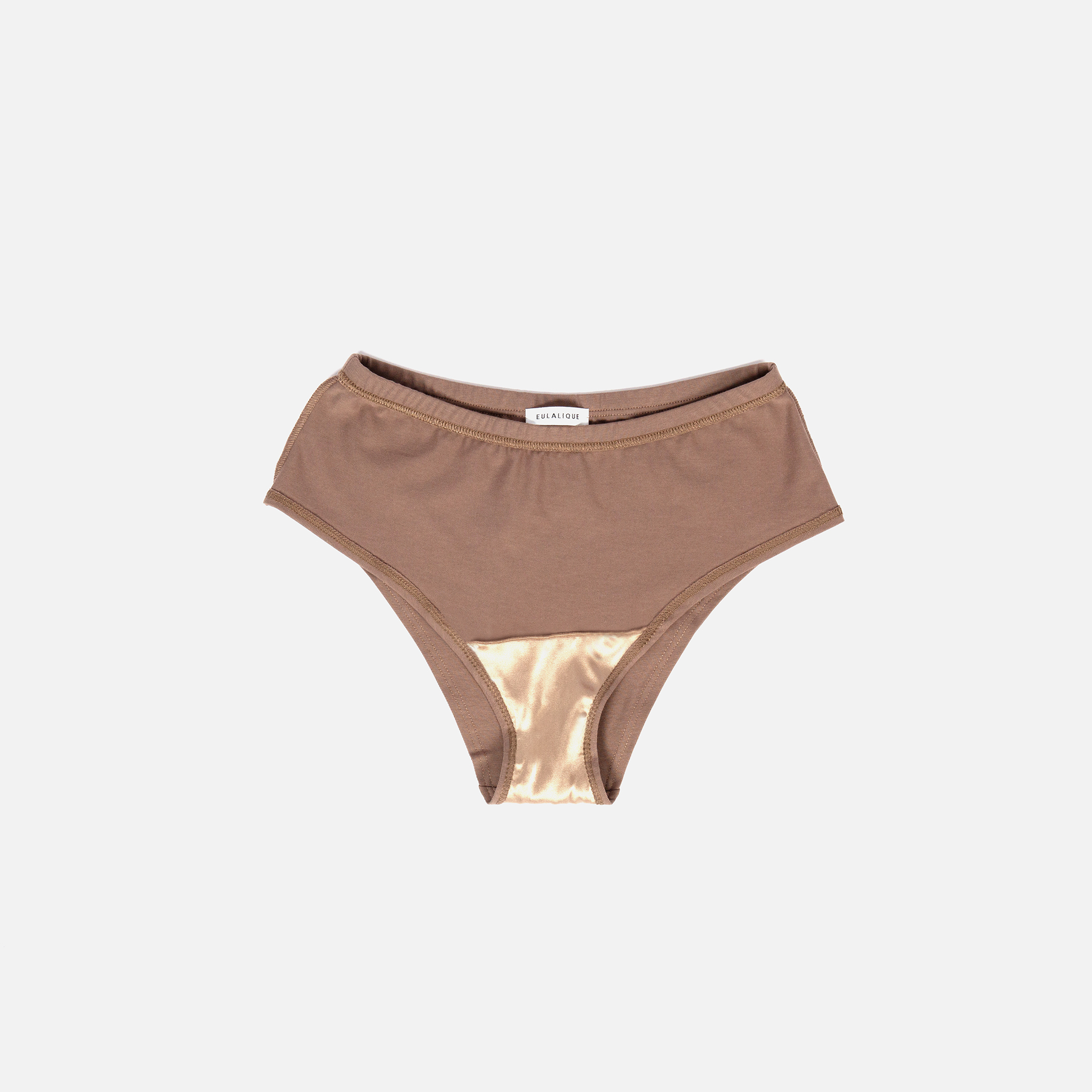 Уникальные трусы-слипы Eulalique цвета "мокко" из тонковолокнистого хлопка нежно заботятся о вашем комфорте день за днем. Эксклюзивная технология ластовицы, выполненной из роскошной ткани с 95% натурального шелка и 5% эластана, обеспечивает деликатную заботу о коже, создавая ощущение легкости и удобства. Элегантное сочетание универсальной конструкции и натуральных материалов подчеркивает изысканность изделия и обеспечивает максимальное удобство даже при длительном использовании.